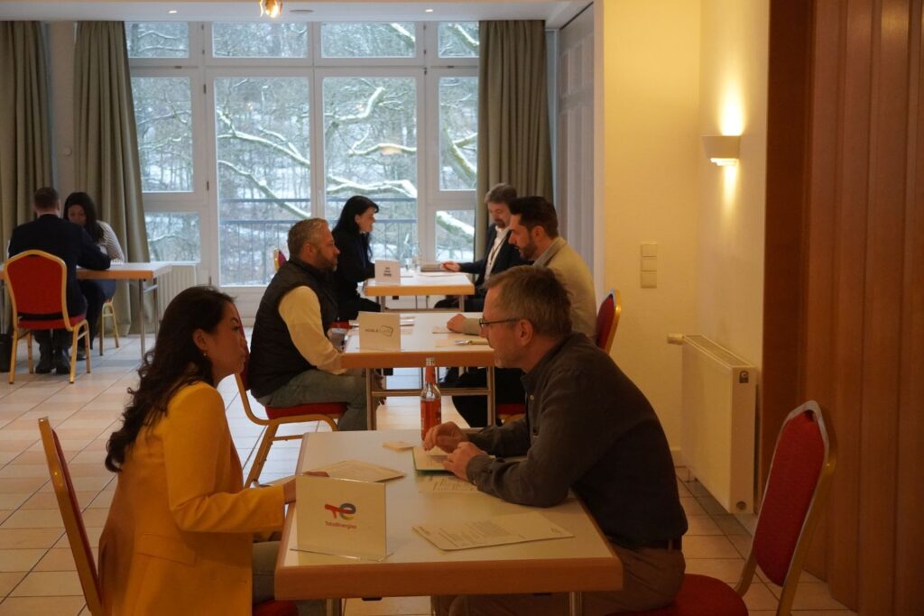 Am Morgen starteten die Gesprächsrunden mit spürbarer Energie. Im Sechs-Minuten-Takt wechselten die Teilnehmer die Tische und nutzten jede Begegnung für intensiven, lebendigen Austausch. Pausen und das gemeinsame Mittagessen boten Raum für persönliche Gespräche und vertiefte Kontakte.